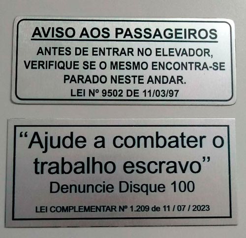 Em nosso catálogo temos bicicletários, trava de cartão para carrinho de supermercado, bituqueiras, chapinhas em alumínio para caixa de correio em diversos formatos, tapetes personalizados sob medida, placas de aviso, placas fotolumiscentes, placas para elevador e tudo mais que você precisar para seu condomínio.